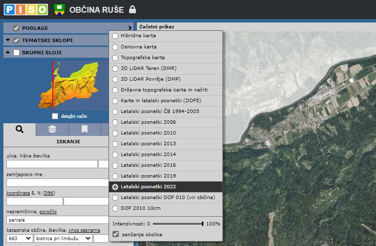 Letalski posnetki 2022 V sistem PISO smo dodali novo podlago "Letalski posnetki 2022". Podlaga je na voljo pri občinah na SV delu Slovenije, kot je prikazano na shemi snemanja. Objavil Blog Author 06. december 2022 09:22 Kategorije: GURS Novosti Obvestila Prejšnja objava << >> Naslednja objava